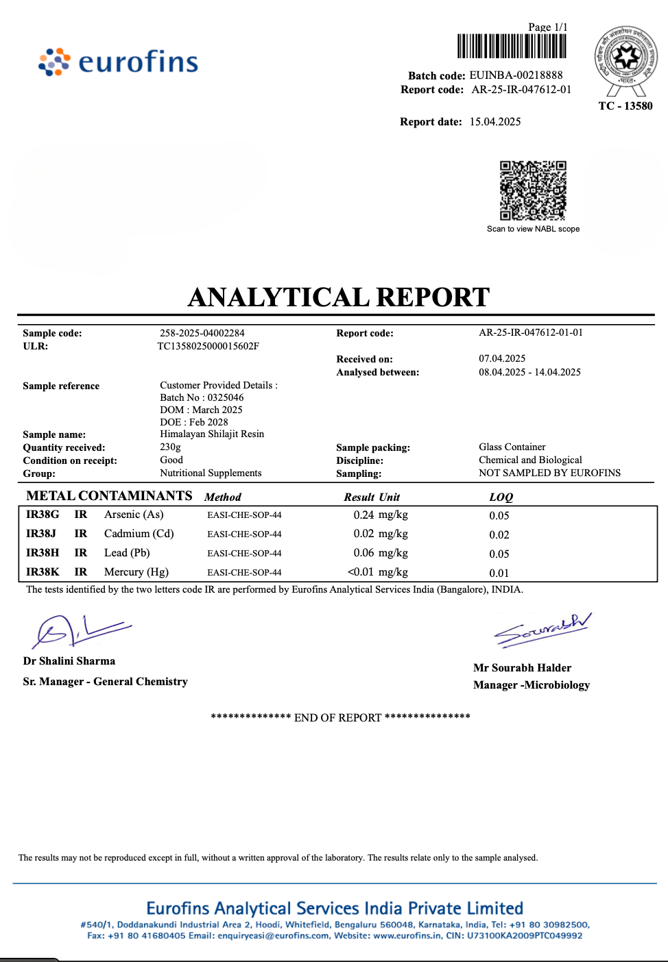 Când Shilajit este testat în laborator, se verifică conținutul diferitelor substanțe - de exemplu, minerale, acizi fulvici, metale grele și altele.